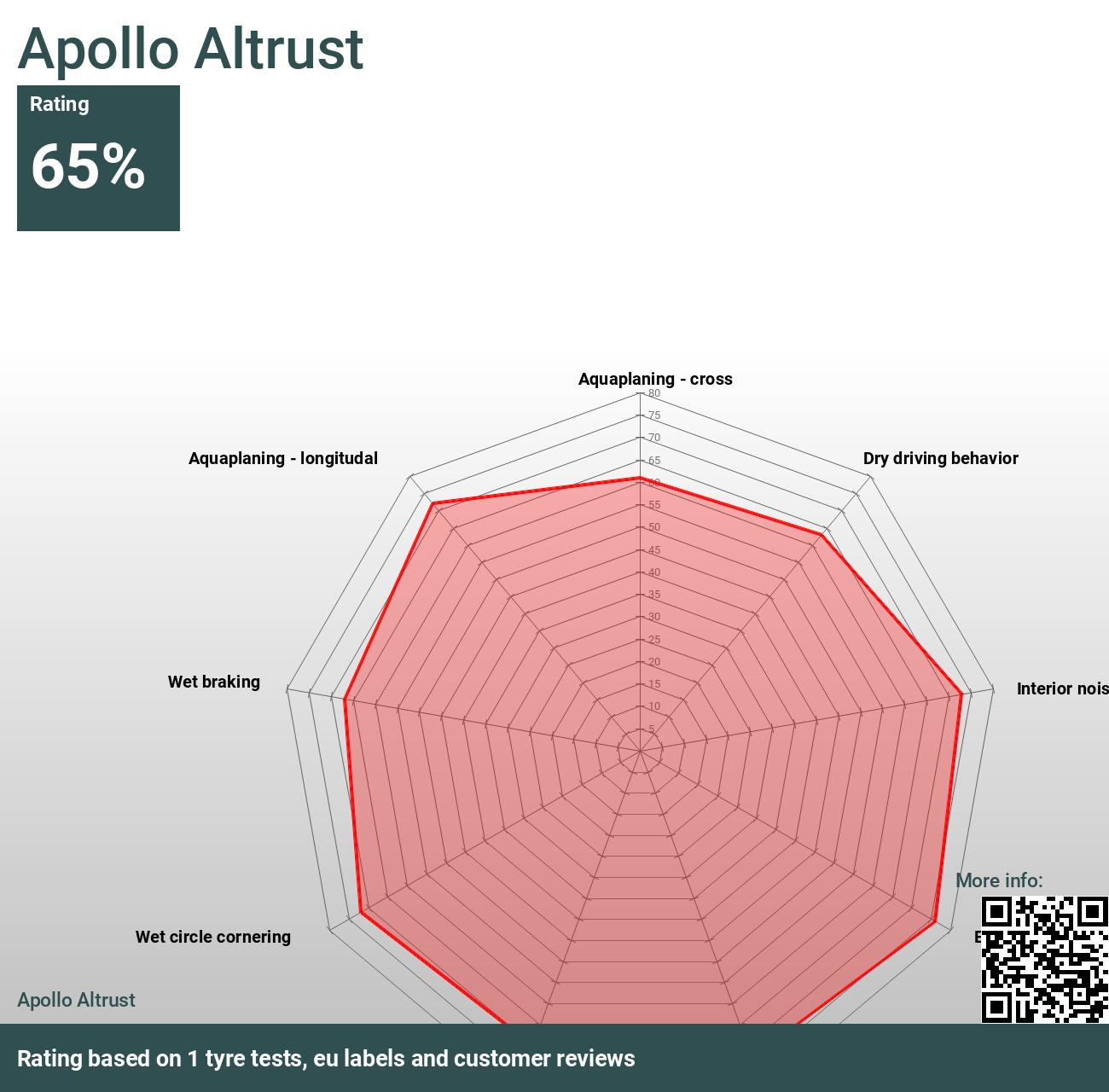 Apollo Altrust testades 1x (ADAC) och vann ADAC 215/65 R16 testet.