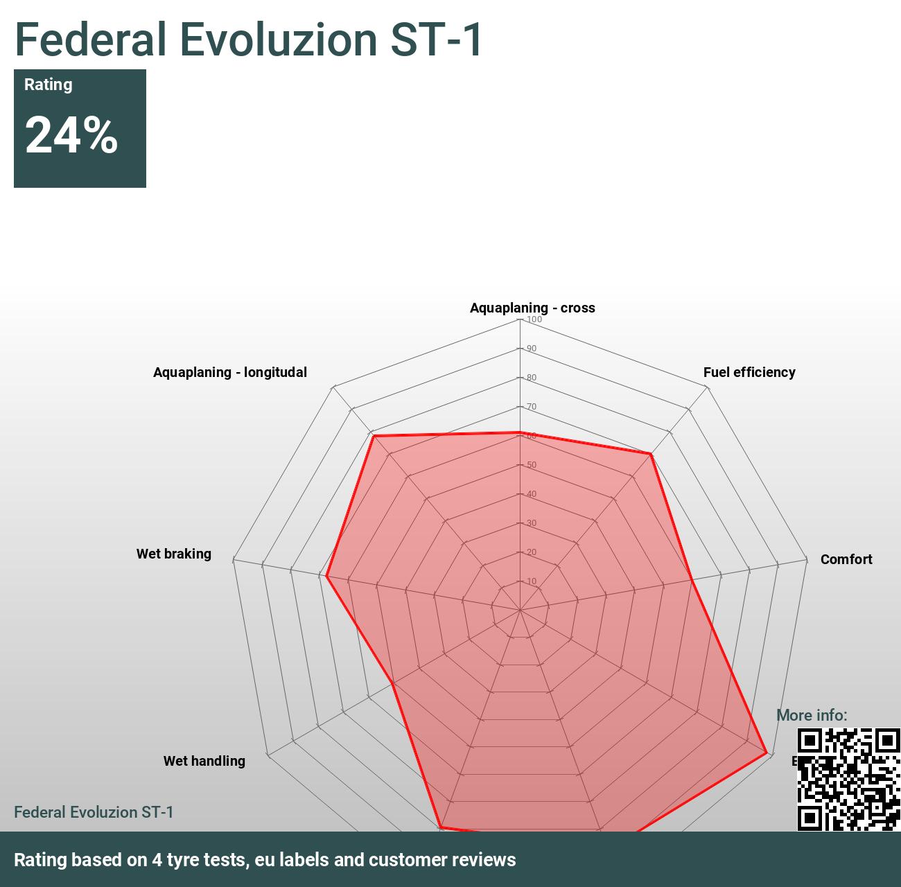 Federal Evoluzion ST-1 tillverkas i 31 storlekar, från 195/45 R16 upp till 275/40 R20.