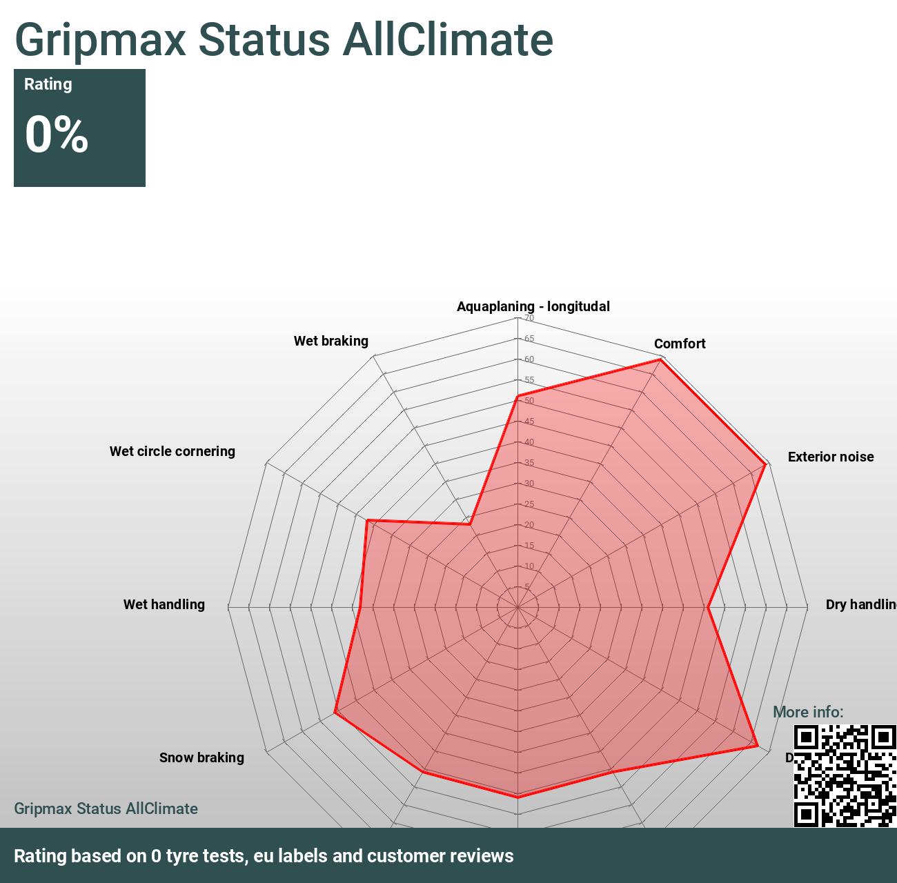 Detta diagram visar hur däcket rankas över olika egenskaper jämfört med andra testade däck. högre percentil innebär bättre prestanda - 100% betyder bättre än alla däck i varje test, 0% betyder sämre än alla däck i varje test.