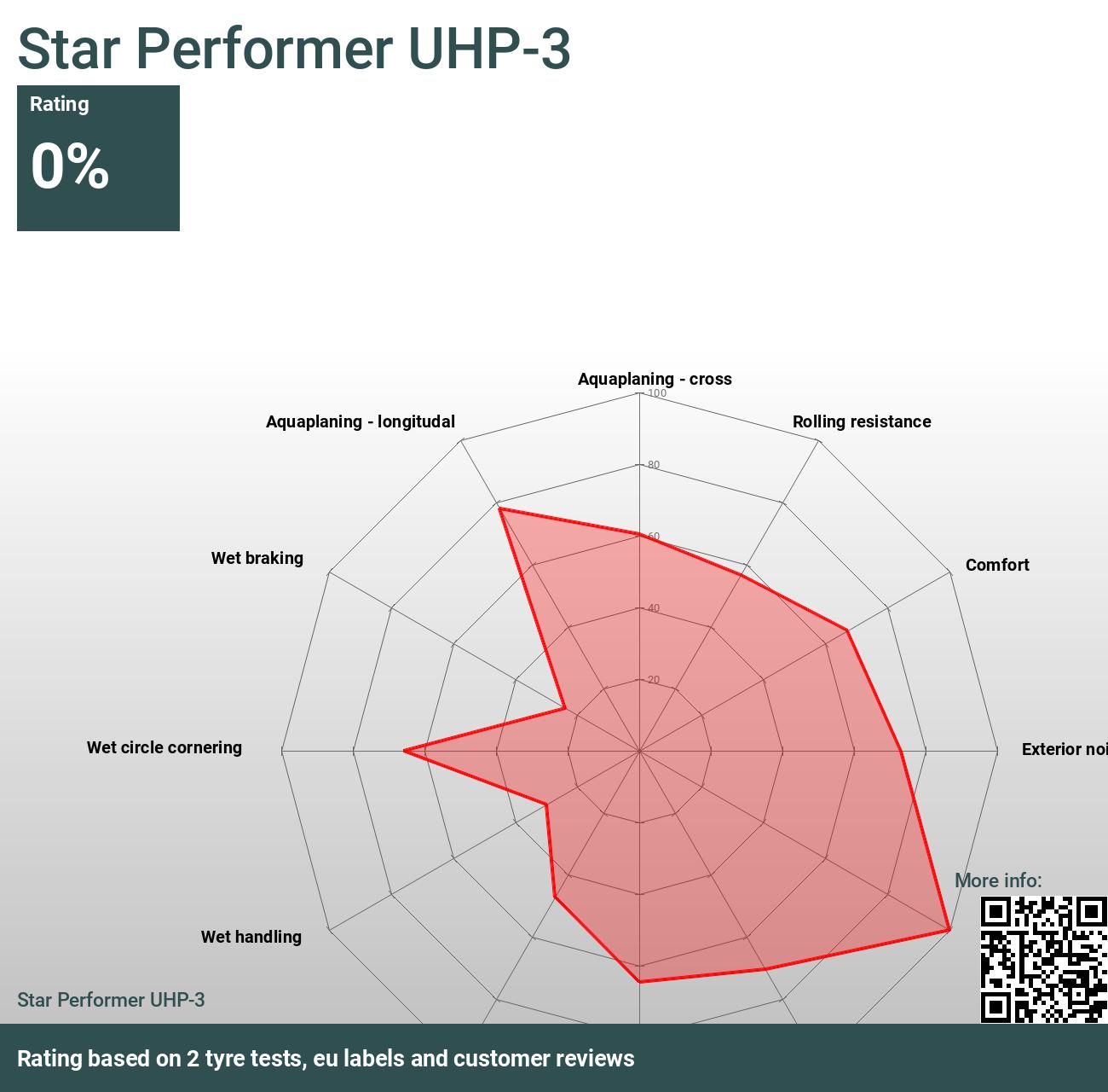 Detta diagram visar hur däcket rankas över olika egenskaper jämfört med andra testade däck. högre percentil innebär bättre prestanda - 100% betyder bättre än alla däck i varje test, 0% betyder sämre än alla däck i varje test.